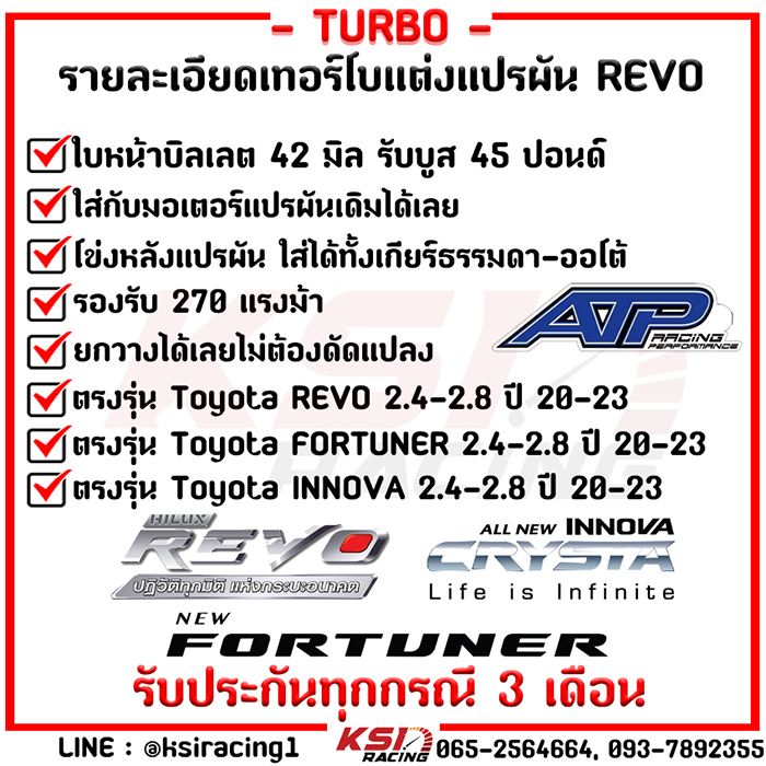 เทอร์โบ แปรผัน ATP เอ้ ปลาทู ดีเซล ตรงรุ่น Toyota REVO , FORTUNER , INNOVA 2.4-2.8