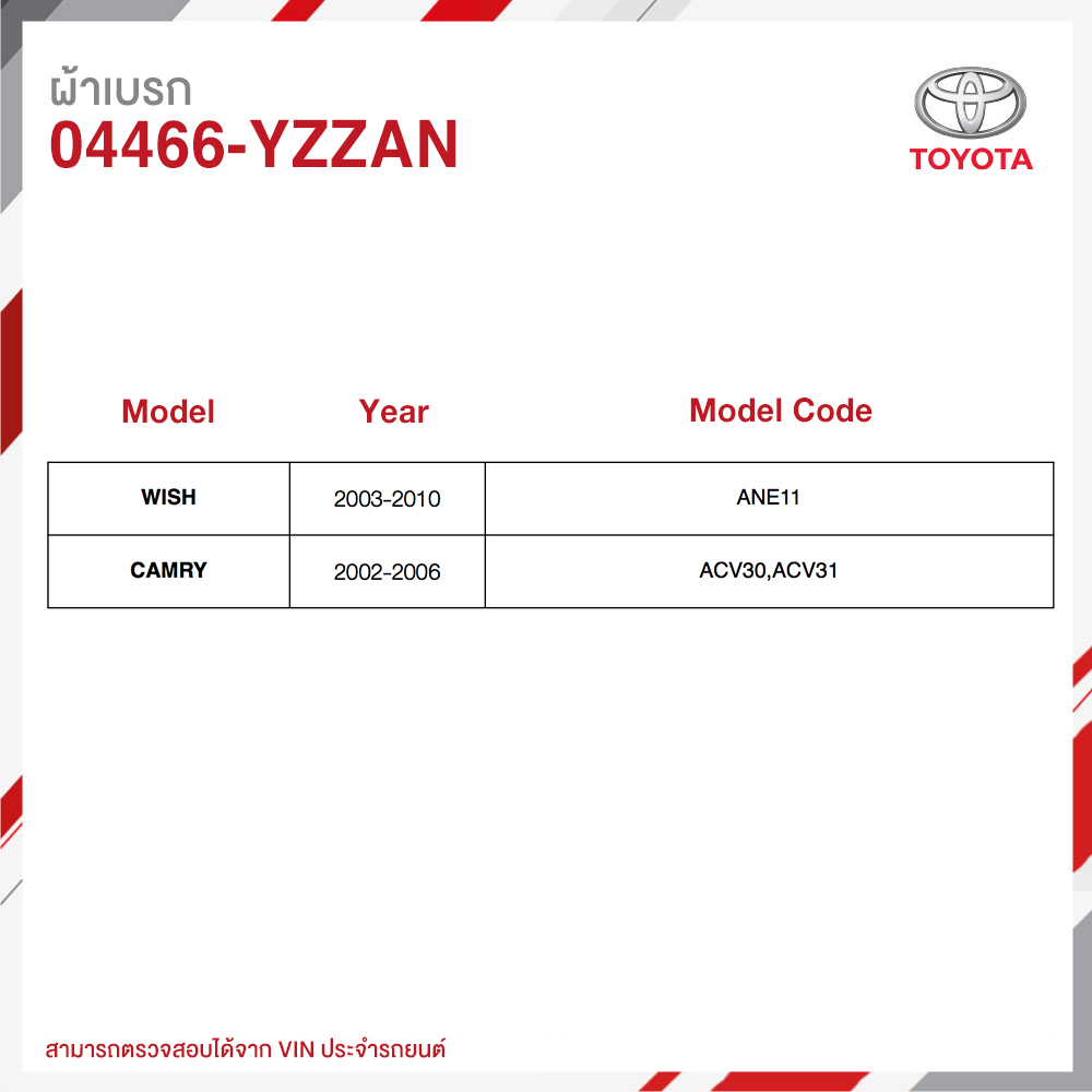 TOYOTA ผ้าเบรกหลังสำหรับโตโยต้า WISH 03-10, CAMRY 02-06