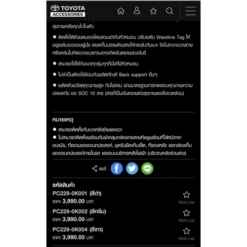 ** PC229-0K005 (สีดำแบบสายรัด ใส่กับรถที่ถอดหัวหมอนไม่ได้)