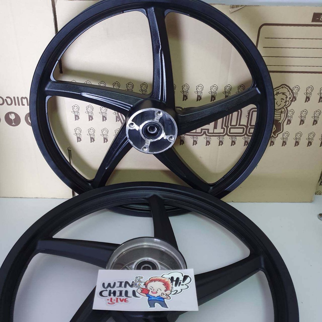 ล้อแม็ก WAVE110i / WAVE125ปลาวาฬ สีดำ ล้อแม็ก ขอบ17 **5ก้านเดิม** ลายเดิมติดรถ WAVE110i ใหม่ 2009-2020 + ลูกปืน + บูชกลางล้อ + ซีลกันฝุ่น ล้อแม็กเวฟ110i *** ยี่ห้อสินค้าแล้วแต่ล็อต ***