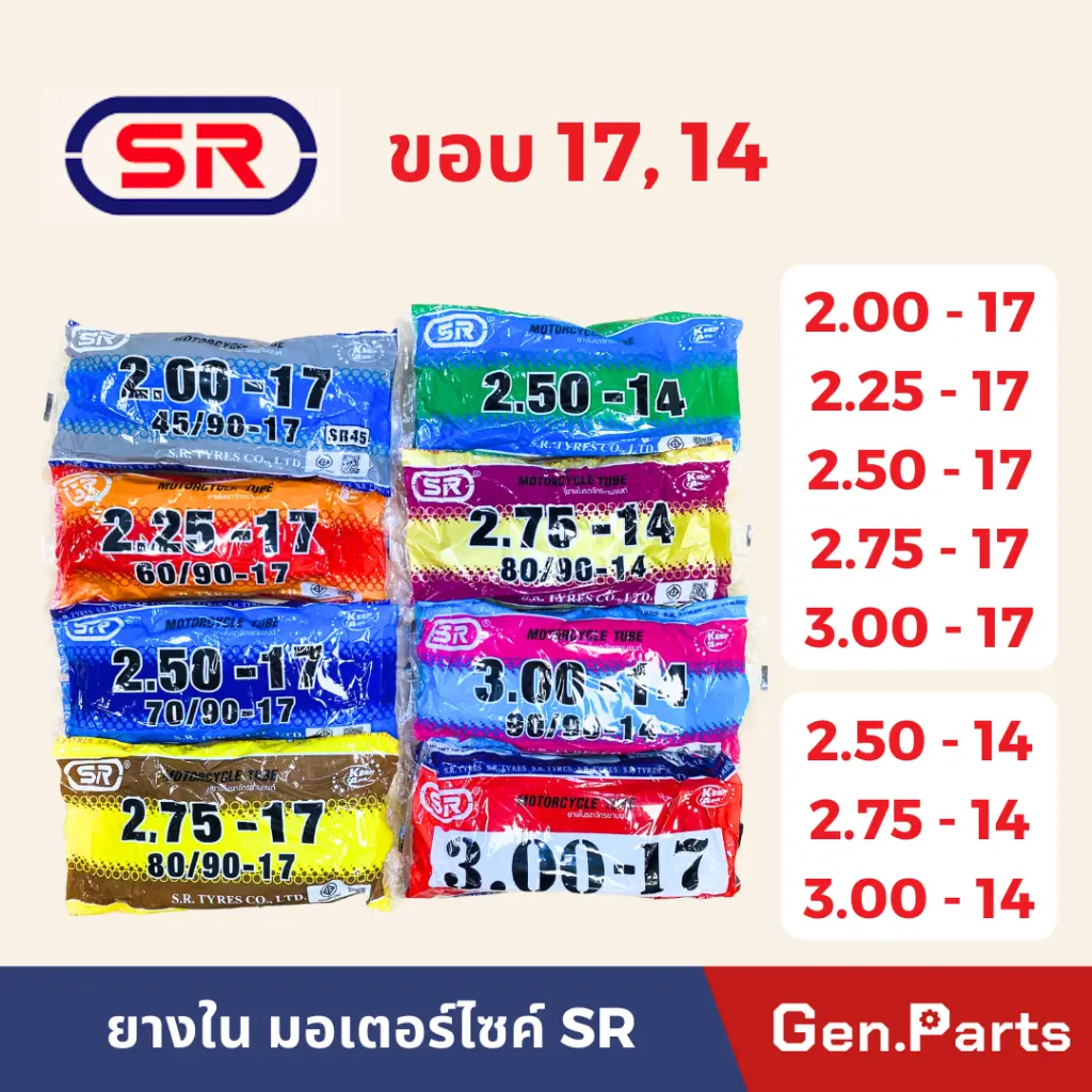 Sr 2.00-17 (50/90), Sr 2.00-17 S (45/90), Sr 2.25-17, Sr 2.50-14, Sr 2.50-17, Sr 2.75-14, Sr 2.75-17, Sr 3.00-14, Sr 3.00-16, Sr 3.00-17 |