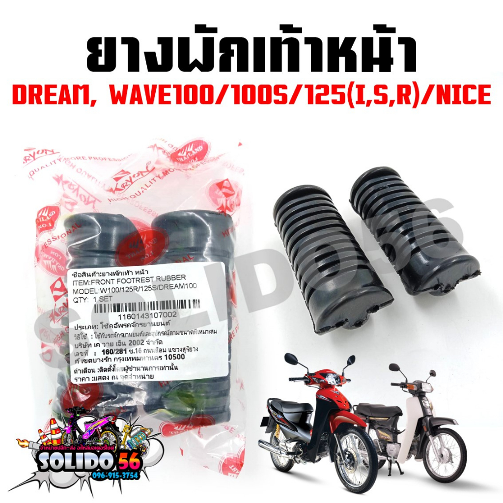 ยางพักเท้าหน้า WAVE100/125(R,S,I บังลม)/DREAM ตัวเก่า, NICE (ขายเป็นคู่) ชุดพักเท้าหน้าสำหรับเวฟและดรีม