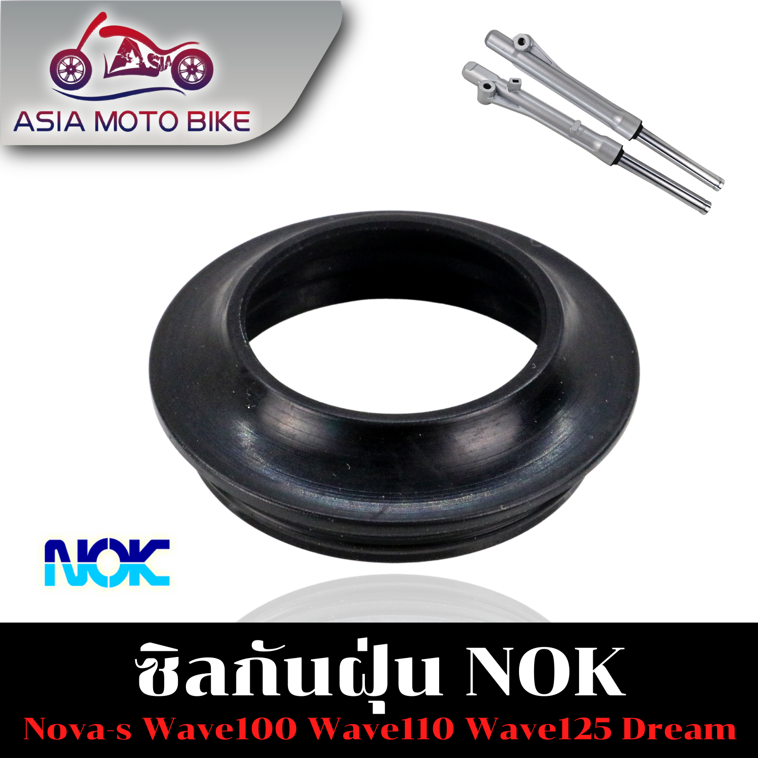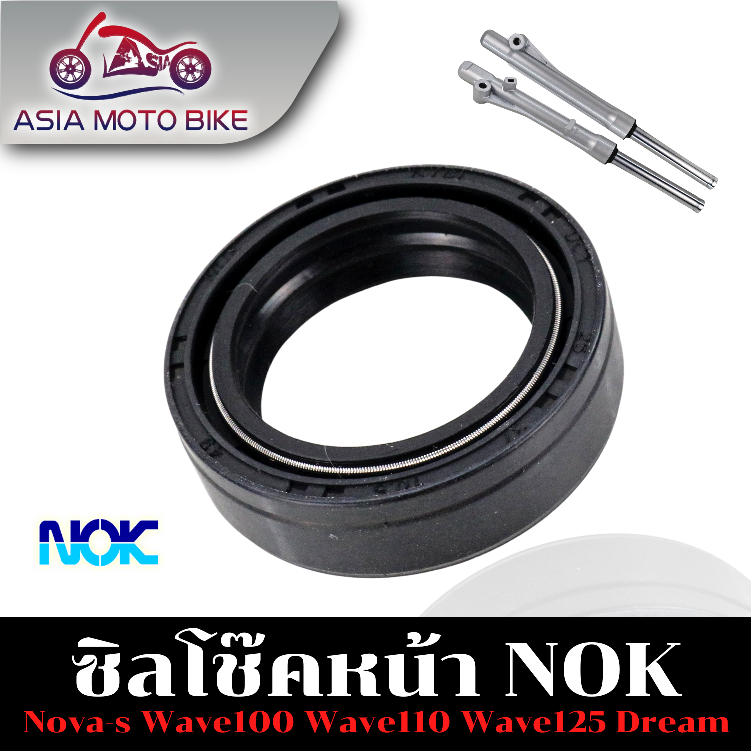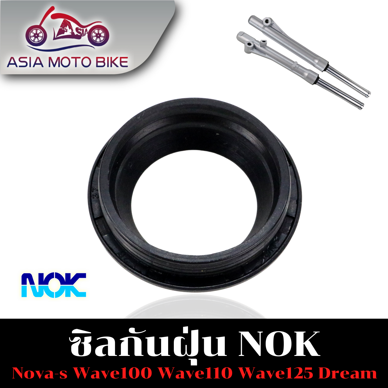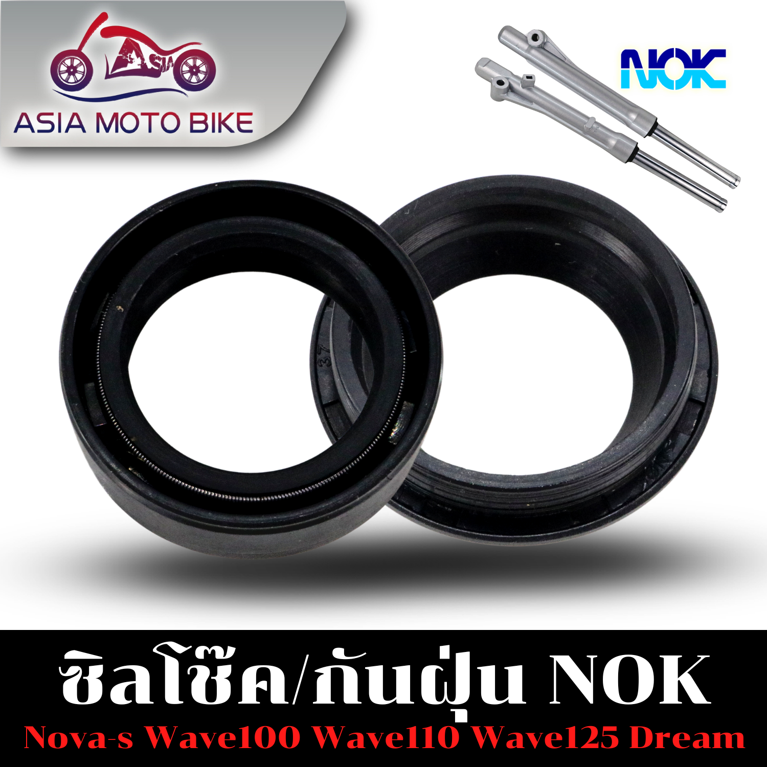 ASIA MOTOBIKE ซีลโช๊คหน้าขนาด26-37-10.5,ซีลกันฝุ่นขนาด26-38-12.5 (มีขายแบบ10ตัวกับแยกชิ้น1ตัว)