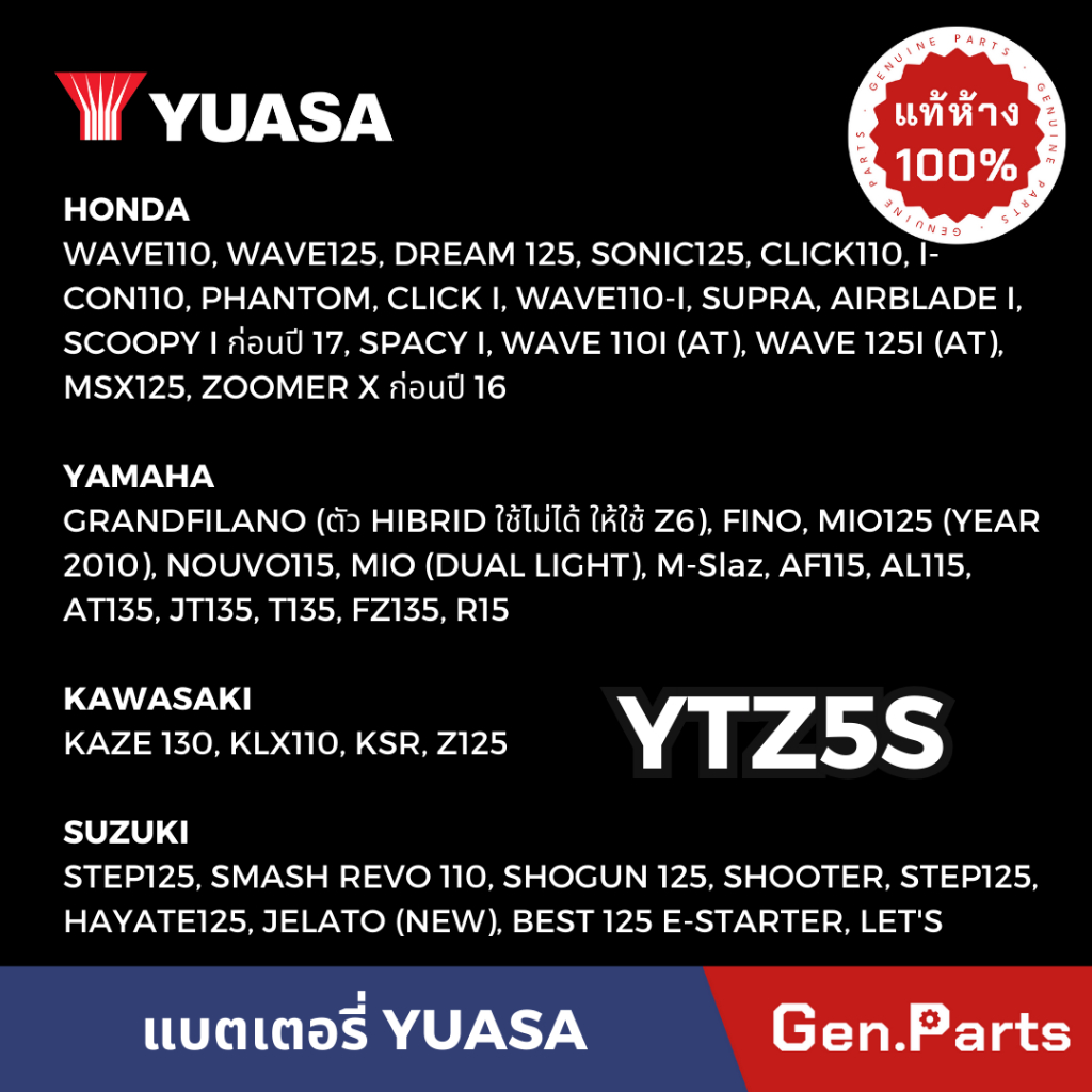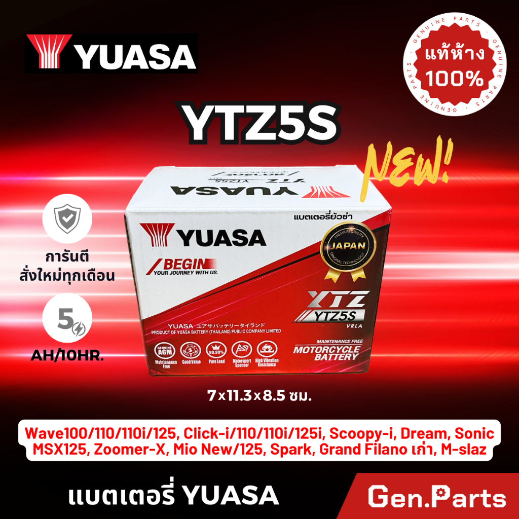 Yuasa ytz5s 5 AMP pin khô chính hãng 12V 5Ah 5A wave dream Click MSX Scoopy Zoomer xe máy Fino Wave 110i