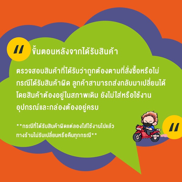 📌 กรณีได้รับสินค้าผิด ไม่ถูกต้อง หรือไม่ตรงตามที่สั่งซื้อ ลูกค้าสามารถส่งสินค้ามาเปลี่ยนได้ โดยสินค้าต้องยังไม่ผ่านการลองใส่ หรือใช้งาน รวมถึงอุปกรณ์ และกล่องยังอยู่ครบ