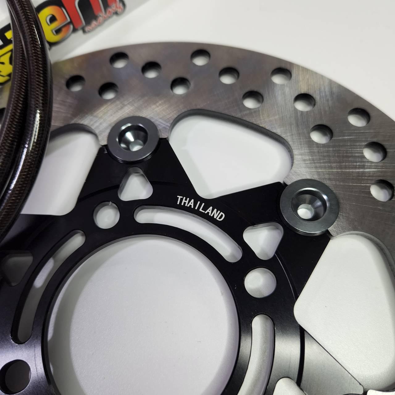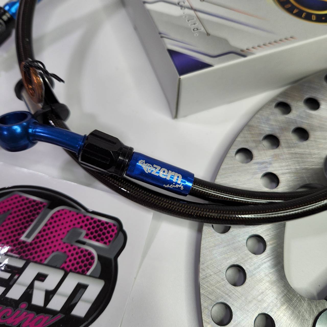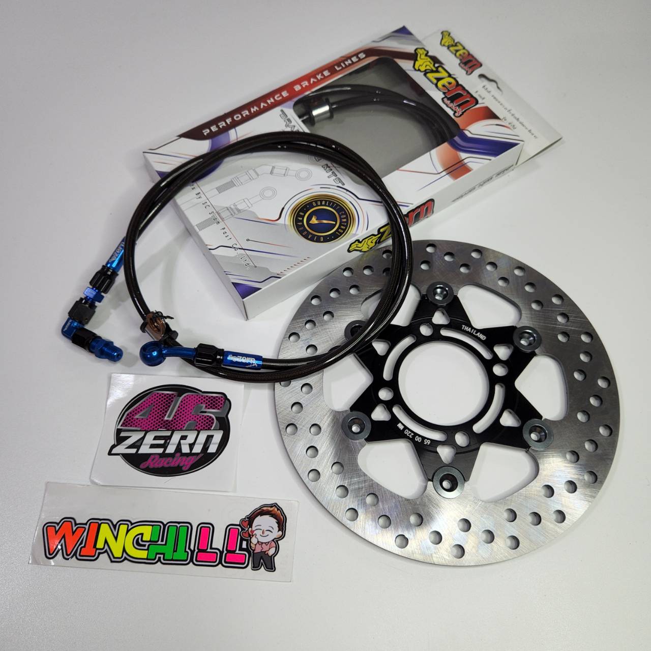 [ZERN Dây phanh, đầu răng cưa, giống như dây SWIT, màu xanh đen, đầu 90, dài 36 + đĩa trước CNC màu đen, đầu mũi tên màu xám + decal, phù hợp cho xe WAVE110i / WAVE125, phù hợp cho tất cả các phiên bản]